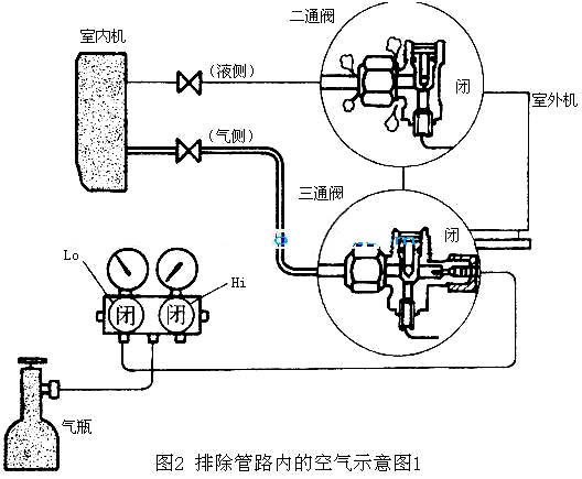 (3)略微打开充气罐的气阀(低侧),清除管内空气后再次关闭。